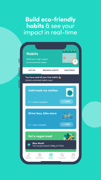Bu uygulama, daha sürdürülebilir ve düşük karbonlu bir yaşam tarzına doğru yolculuğunuzda size yardımcı olmak için oluşturulmuştur. Uygulama, mevcut yaşam tarzınızda olumlu değişiklikler yapmanız için ihtiyacınız olan bilgi ve desteği sağlar. Bu uygulama ile daha sürdürülebilir ve düşük karbonlu bir yaşam tarzı için ipuçları ve püf noktaları yanı sıra bu değişiklikleri yapmak için gerekli bilgileri bulacaksınız.